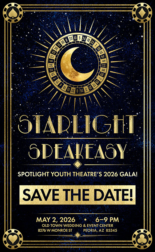 Join us for Spotlight Youth Theatre’s 2026 Gala – Starlight Speakeasy – Where fortune meets the footlights!